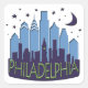 Artistic render of Philadelphia's signature skyscrapers against a starry sky in a cool colour scheme.