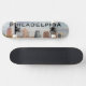This is the beautiful skyline of the city of Philadelphia, taken from a bridge crossing the Schuylkill River. The architecture of the skyscrapers and buildings of Philly are on display in this photo. Centre City, the downtown area of Philadelphia, is the focus of this photograph. Pretty clouds hang overhead in the summer sky.