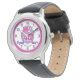 Phoebe single-line name meaning heraldry knights shield kids wristwatch. Knights style shield monogram letter P name simple numbered clock face perfect for in shades of purple, hot pink, white and grey. Personalize with your own name and name meaning for a great unique personalized gift, this example is for names with the letter P and currently reads Phoebe Bright radiance. Other matching items and names are available. Unique shield drawing, graphic art, name research, wording and design by Sarah Trett for www.mylittleeden.com