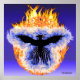 If you love this mythological bird you're going to want this fantastic poster! It features a black shaded phoenix with a blue & white fire around its body & a cool egg shape in the background also on fire.