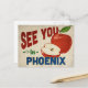 A charming Phoenix Arizona vintage travel postcard featuring a lovely red apple, along with fun retro style text that says, "See you in Phoenix"
