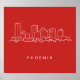 This design features a hand drawn sketch of the Phoenix skyline on a rust colored background.