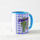 The coffee mug design saying "Phoenix" and "The Valley" is colored blue. It makes it ideal for either coffee or tea in the mornings. It is microwave and dishwasher safe.