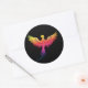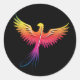 Phoenix bird rising in gradient colour spectrum with flame colours to represent the mythological fantasy phoenix rising from the flames with it's wings spread to begin a new life.