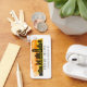 Rectangular aluminum keychain features Phoenix, Arizona city skyline silhouette with sunset watercolor splash background and latitude & longitude map coordinates.