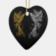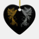 decorative lineart design of two phoenix birds in yellow and white colours facing each other on a ceramic ornament