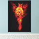 Woman that is a flame with wings. A phoenix woman in red, orange and yellow flame in a backdrop of black.