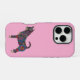 A pink iPhone 16 case featuring a playful mosaic-style Chihuahua illustration, designed to protect your phone while adding a cute and artistic touch for dog lovers.