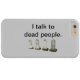 Genealogy humour - "I talk to dead people" is the text accompanying four headstones. Background is grey)