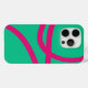 Abstract minimalist phone case featuring bright pink curved lines over a bold green background. Eye-catching and modern, this design protects your iPhone while making a strong artistic statement. Perfect for creative and trendy interiors.