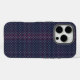 Phone case with a blue and pink geometric pattern, shown vertically and horizontally. The design is sleek and modern, conveying a stylish tone.