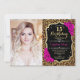 Photo 15th Birthday Party Pink Gold Leopard Print Invitation