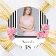 Elegant, glamourous and feminine for a girl's 18th birthday party. Classic and chic slim black and white vertical stripes. Decorated with pink flowers, peonies and roses. Templates for a name, age 18, date of birth and the date of the anniversary. Template for your own vertical sized photo. Girly and elegant!