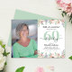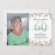 This surprise 60th birthday party invitation features space for a vertical photo and is accented with a soft pastel watercolor floral frame across the top and bottom. The design combines modern typography with trendy calligraphy, creating a refined and stylish look—perfect for celebrating a special woman’s milestone birthday.