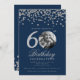 Photo 60th Birthday Silver Confetti Navy Invitation