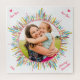 Give the special mother in your life her own unique modern photo jigsaw puzzle. Puzzle has space for a photo and four areas of text, like names, love you, and the year. Behind the image is bright abstract starbursts. Text is editable, so this puzzle can be for anyone who loves bright, colourful design.
