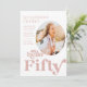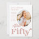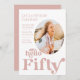 Invitation d'anniversaire "Hello Fifty" avec photo et texte rose clair.