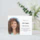Add your own vertical size photo. An arch shaped photo frame. A chic white background colour. Personalize and add a name and party details.