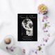 For this save the date, the couple's photo is surrounded by a real foil arch frame. Choose from gold, silver, or rose gold for the foil. The couple's names, wedding date and location sit below the frame.. The back of the card is black.