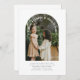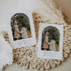 Une simple invitation d'anniversaire conjointe avec votre propre photo en forme d'arc avec le titre et des étoiles sur le dessus.