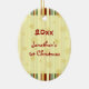 Baby's first christmas ornament customizable with your own baby photo in yellow, red and green with festive snowflakes and stripes pattern. A memorable christmas gift for any new mom.