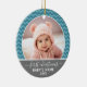 Photo Babys First Christmas - blue chevrons gray Ceramic Ornament