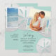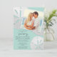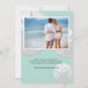 This elegant 2 photo sea glass beach destination wedding website invitation features your own photo over a trio of tropical white sand dollars and elegant hand written calligraphy script on a sea glass green background. Back of the card features another photo and your wedding website, leading your guest to more information regarding your wedding. A wonderful way to invite your guests to your tropical, seaside, nautical, or oceanfront location wedding in Hawaii, Florida, California, Mexico, or other destination wedding location. Photographs of the sand dollars and design © by T.K. Goforth, all rights reserved.