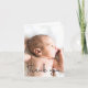 Personnalisé avec la photo du bébé sur le devant et le message spécial, les statistiques de naissance, les noms des parents à l'intérieur de cette carte pliée faire-part de naissance. Cette conception utilise une police de caractères élégante et moderne pour les mots "Merci" pour une touche de sophistication. Express votre enthousiasme à annoncer la naissance de votre enfant et envoyez votre gratitude en même temps. (Format vertical)