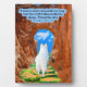 Belle Plaque 5 x 7 Ecritures, avec un chevalet, d'une scène colorée et détaillée où un somptueux Eskimo Chien blanc américain se promène sur un chemin vert irisé en pierre avec des murs en pierre rouge vers une porte en roche rouge voûtée. La porte s'ouvre sur un beau ciel nuageux bleu. Cette scène accompagne le verset de la Bible Proverbes 16:9 : "Le coeur de l'homme conçoit sa voie; mais l'Éternel dirige ses pas." Cette plaque fait un merveilleux cadeau ou peut être utilisée pour nous rappeler la Parole de Dieu.