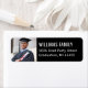 Le design personnalisé moderne comprend une photo de graduation du diplômé avec le texte d'adresse de retour blanc et l'arrière - plan noir classique. Customisez le texte et l'arrière - plan pour coordonner avec la photo ou les couleurs de l'école!