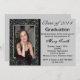 Graduation invitations let you invite friends and family to celebrate with and recognize the achievements of your scholar! Personalized graduation announcements are an ideal way to share your academic achievements and successes. All school graduates receive special recognition and honours, if it's only by receiving their diploma. And, when this happens, who doesn't want to include this information and accomplishment in totally customized graduation invitations. Personalize the card by changing the text and photo in the fields provided. You can change font style, size, and colour as well as paper type.
