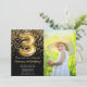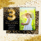 Photo Black Gold Girl 3rd Birthday Invitation