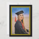 Parents or guardians proudly announce the graduation of a child with this card. Photo and Black background with gold borders. The photo and all text are easily changed with the template. Selecting “Personalize this design” offers you several edit options to easily change the text (wording, plus type font, color, size, position) and to edit the design elements. You may also want to scroll down to the section “Transfer design to a product” for a few suggestions about other items this design can be used on. Downloadable for sending by phone or email.
