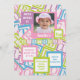 The cheerful pink, green, and blue color scheme is lively and engaging, making it impossible for guests to say no. It includes all the essential details about the party—date, time, location, and RSVP. Send out this sweet card and get the party planning in motion!