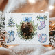 A refined holiday photo card framed with hand-painted winter greenery and a satin blue bow. The watercolor wreath adds a soft, elegant touch, highlighting your favourite family photo in a timeless Christmas style. Perfect for sending warm wishes with a blend of sophistication and seasonal charm.