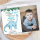 Photo Blue Green Dinosaur Birthday Invitations
