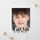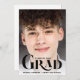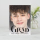 Announce your graduate's achievements with this modern graduation announcement featuring his or her favourite photo with "GRAD" written on top in large bold trendy typography. Easily add his or her name, school and class year.
