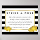 Photo Booth Poster Sign Black Stripe & Gold Peony