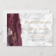 The left-hand edge of this elegant modern wedding invitation features a burgundy watercolor agate border trimmed with faux gold glitter. The customizable text combines black and gold-coloured handwriting, copperplate and italic fonts on a grey and white marble background. Easily replace the sample image on the back with your own horizontal photo.