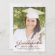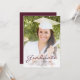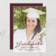 Faire-part moderne de graduation avec une photo verticale personnalisée. Le mot "Graduate" apparaît dans l'écriture bourguignonne, avec le nom du diplômé, l'école et l'année de graduation ci-dessous en sans serif font. Remplacez facilement l'image de l'échantillon par la photo de votre diplômé. Un écran de dégradé blanc permet de s'assurer que le texte s'affiche. Ajoutez des détails sur les réalisations de votre diplômé et les plans futurs au verso en blanc sur un solide arrière - plan bordeaux. Idéal pour obtenir un diplôme d'études secondaires ou collégiales.