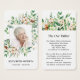 Cartes funéraires fortes et durables. Ce design botanique d'eucalyptus à fleurs blanches encadre parfaitement la photo de l'être aimé. Leur nom et leur date de vie sont ci-dessous. Il y a un autre arrangement de fleurs de coton blanc et de verdure à l'arrière et La Prière du Seigneur est en dessous. Vous pouvez changer cela à votre prière ou poème préféré - ou votre propre souvenir personnel.