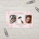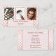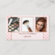 Une carte de visite moderne avec 3 photos de votre choix encadrée par un élégant design rose vif avec des pois et une doublure dorée rose. Un beau carte de visite pour esthéticienne, salon de clous ou maquilleur.