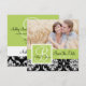 Cartes de faire-part de date de mariage à motifs damassé vert clair, noir et blanc avec votre monogramme, initiale et noms, carte plate avec votre photo de fiançailles au recto et votre texte au verso. Modèle entièrement personnalisable. Elke Clarke© Une belle façon d'annoncer à vos invités votre jour de mariage avec ce design moderne aux éléments traditionnels tels que le motif damassé vintage. Parfait pour un mariage de printemps ou un mariage d'été. Pour d'autres couleurs de damassé, veuillez contacter luxuryweddinginvitations@gmail.com
