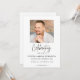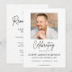 Share a meaningful tribute with this modern Celebration of Life photo memorial invitation. Featuring a clean, elegant layout with refined script typography, this customizable card offers a beautiful way to invite family and friends to a remembrance or celebration of life service. Personalize with your own photo and event details to create a timeless and heartfelt keepsake.
