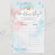 Very modern new game "Guess Age of Mom and Dad in Photos". Make your baby shower really memorable. This baby shower game card features a script modern font on pink and blue watercolor background, perfect for a gender reveal party!