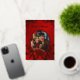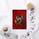 This elegant Chinese wedding invitation features a round photo surrounded by real gold foil cherry blossom branches and a real gold foil round gold double happiness symbol on a shimmering floral red background. Bride and groom names in an elegant classic script. Chinese wedding invitation or tea ceremony invitation.