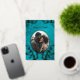 This elegant wedding invitation features a round photo surrounded by real gold foil cherry blossom branches on a shimmering floral turquoise background. Bride and groom names in an elegant classic script.