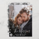 The more the merrier photo christmas pregnancy announcement cards. Expecting parents! Beautiful modern white hand lettered typography "the more the merrier!" script card to share your happy news with family and friends. Features a white handwritten script, snowflakes overlay and full photo. You can personalize the design by replacing the sample text and photo. At the backing snowy frame on grey chalkboard background. #3343 If You need help or matching items please contact to me!