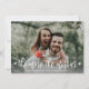 Photo Christmas Pregnancy Announcement Cards. Expecting parents! Modern white hand lettered typography script "the more the merrier" text card to share your happy news with family and friends in the holiday season. At the backing snowflakes on red colour background. You can personalize the design by replacing the sample text and horizontal photo. #3344