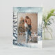Merry and Engaged Photo Christmas Card/Save the Date. Space for 1 vertical photo. Add your custom text on the back. Featuring watercolor evergreen winter scene.